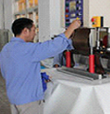 该设备为5000瓦液压式高频热合机,主要是对PVC材质的膜材进行高频热合,高频介质加热是被加工物本身在高频电磁场作用下自身极化发热来完成加工的。同时,可根据膜材的材质不同,可调节电压、电流来调节高周波的的强弱以达到最好的热合效果。而且有火花保护器,防止在热合过程中有打火现象。