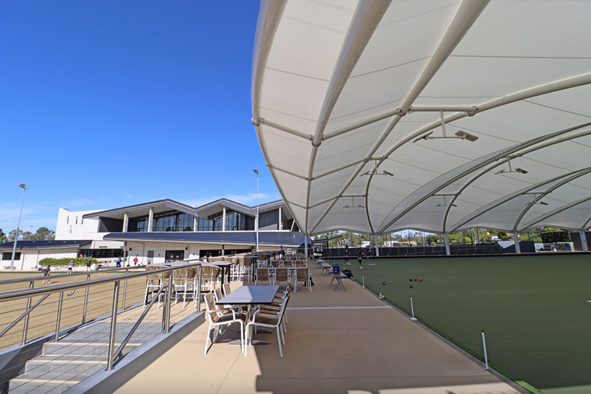 校园内的五座格架屋顶结构,则以另一种方式延续了遮阳与美学的叙事。金属百叶窗表面覆盖氟聚合物粉末涂层,既具备优异的耐候性与抗紫外线能力,又在光影变化中呈现出细腻的质感。这些格架不仅为露台空间提供了舒适的遮阳环境,更以模块化的几何形态,与远处的膜结构遮阳篷形成视觉呼应,共同编织出层次丰富的户外疗愈场景。